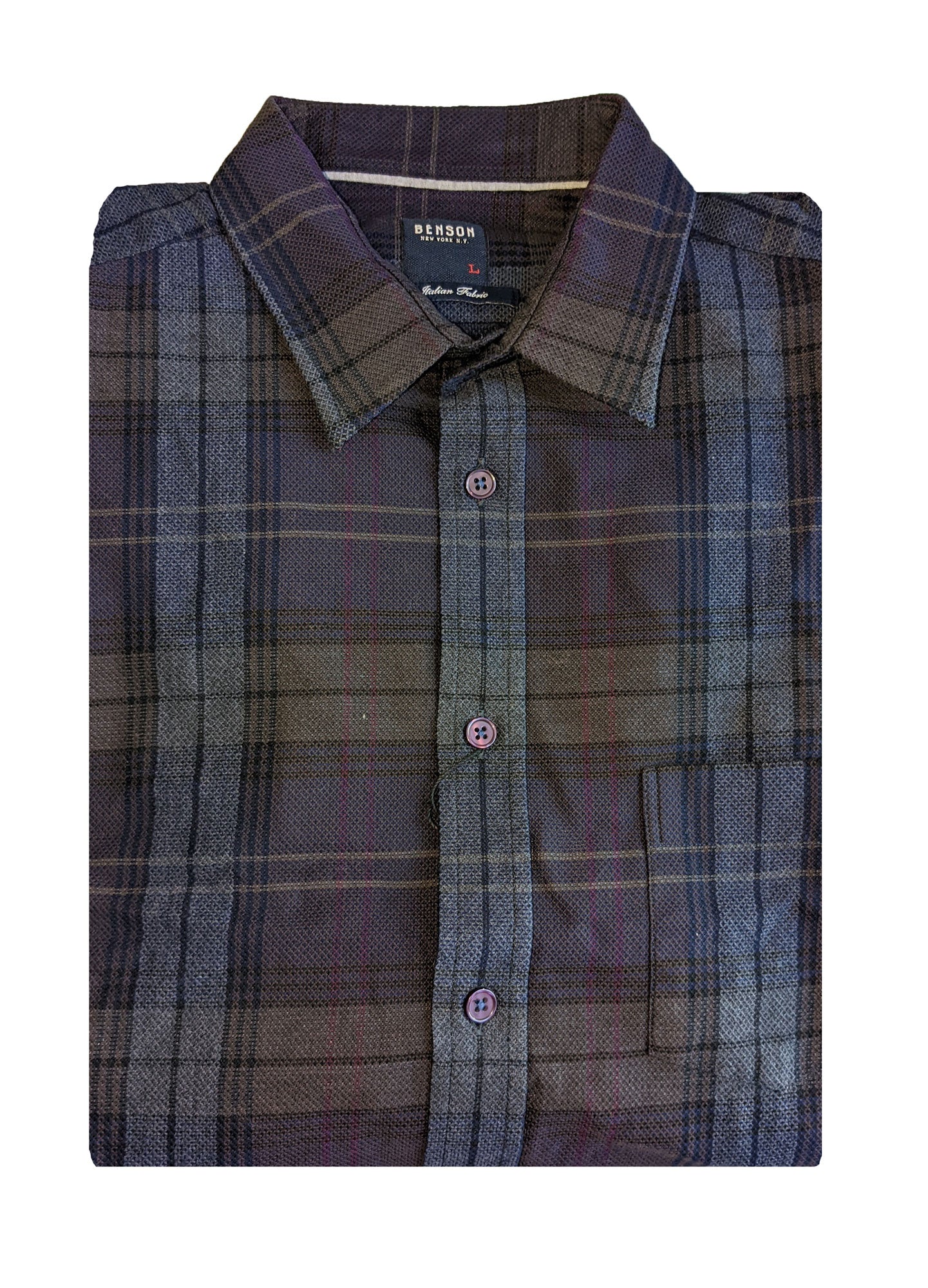 Benson Men's Bordeaux Plaid Long Sleeve Button Down Shirt SH01 Size Large NWT
