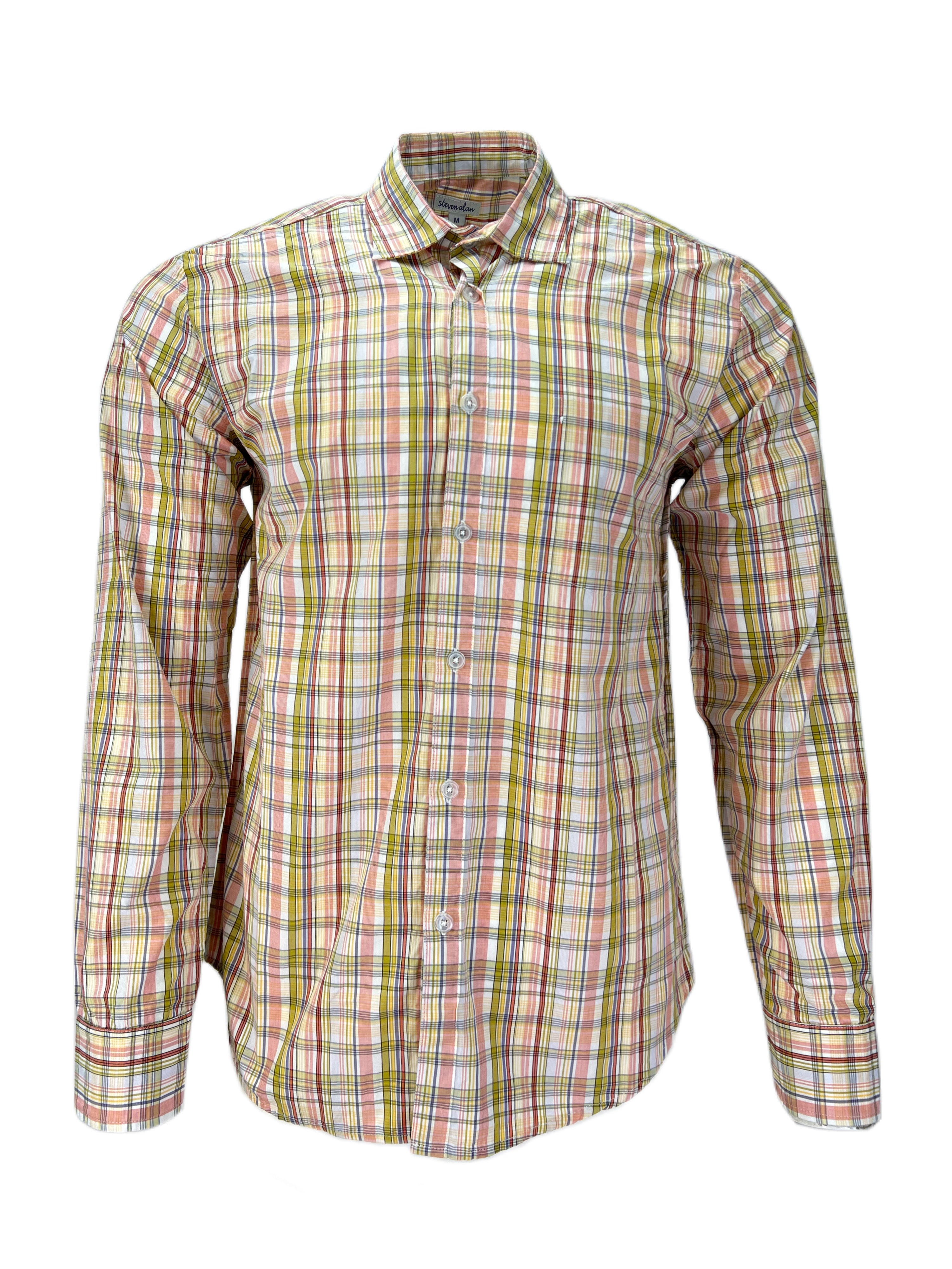 STEVEN ALAN Men's Multicolor Reverse Plaid Casual Shirt NWT