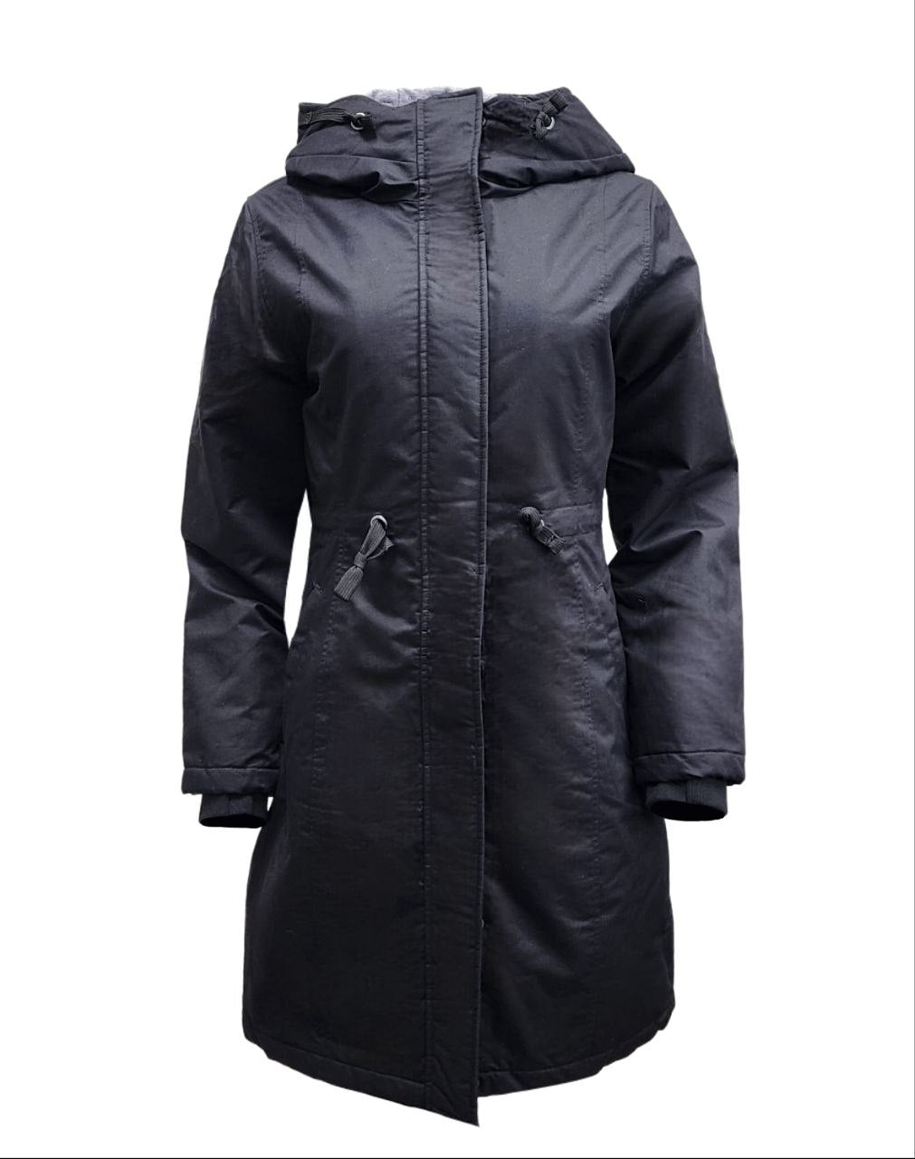 HoodLamb Women's Black Drawstring Natural Hemp Hooded Parka 420 NWT