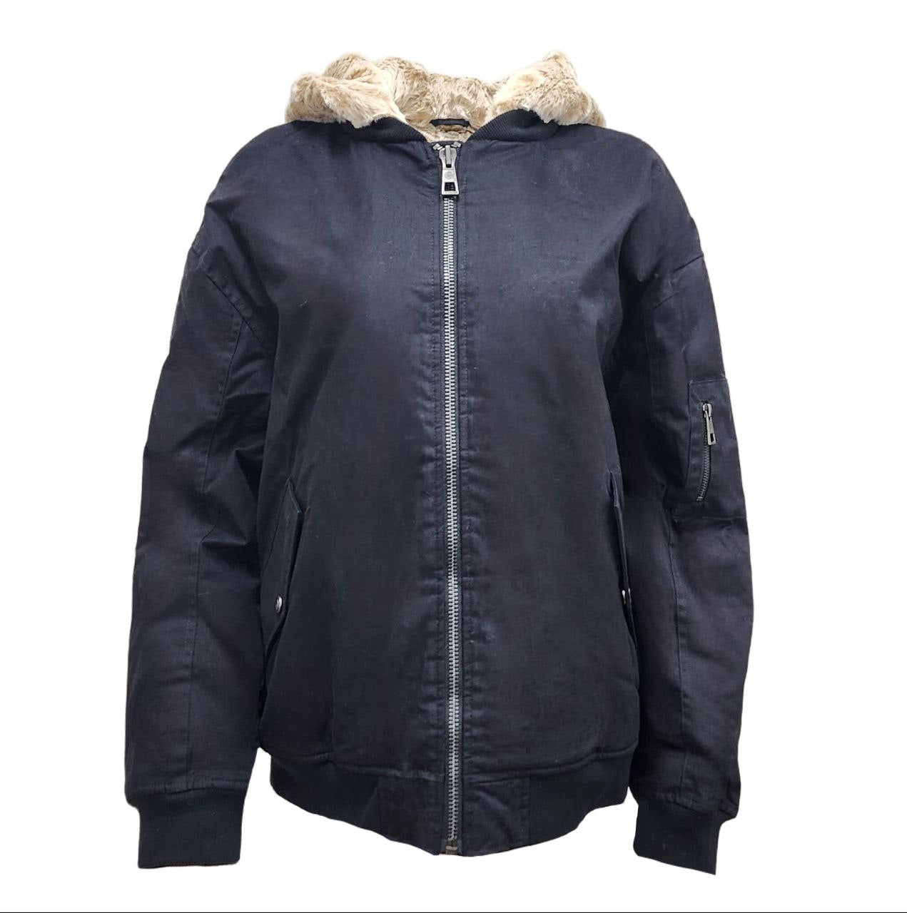 HoodLamb Women's Black Fur Lined Hemp Organic Cotton Bomber 420 NWT