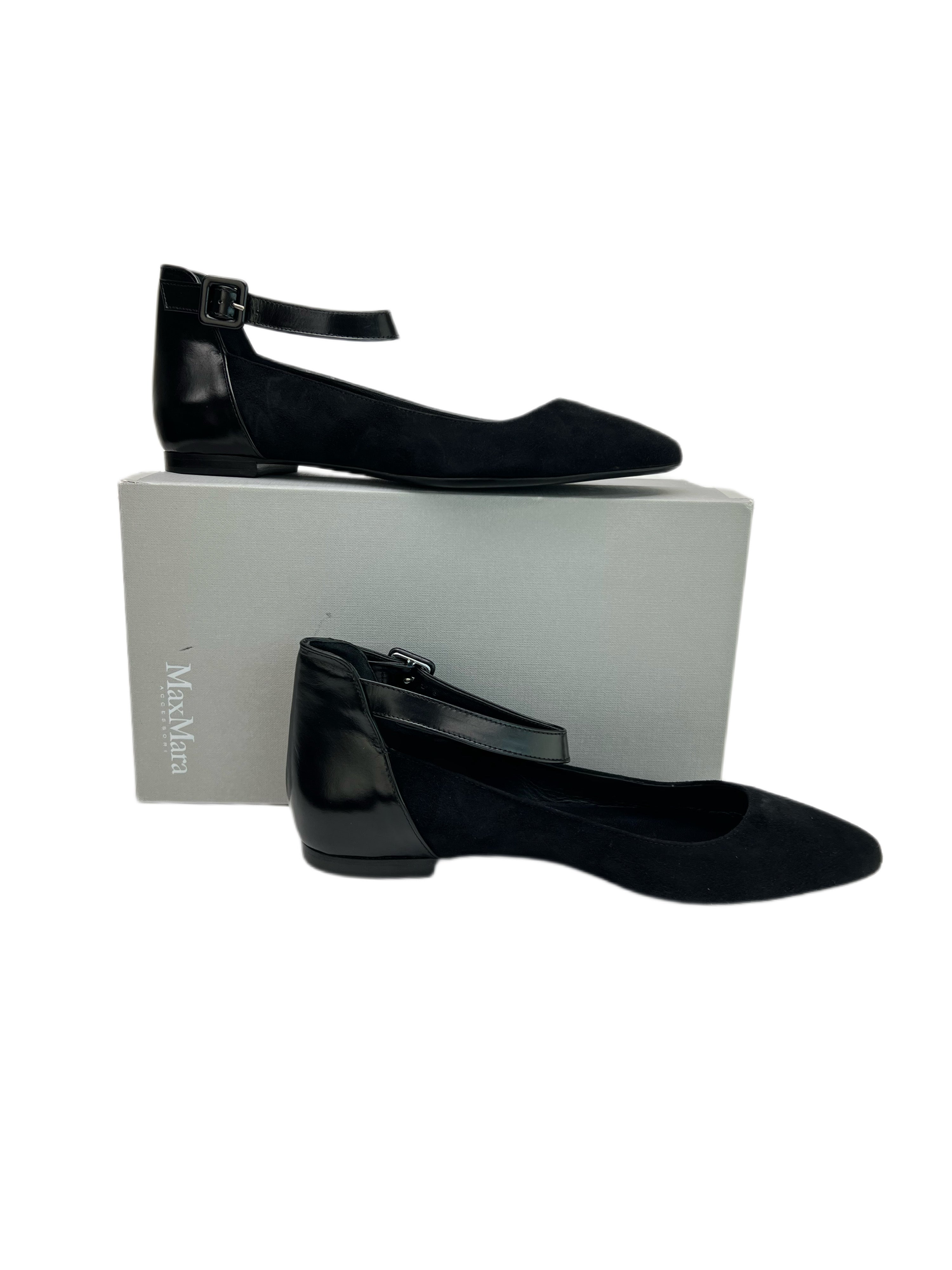 Max Mara Women's Nero Mattia Pointed Toe Ankle Strap Flats NWB