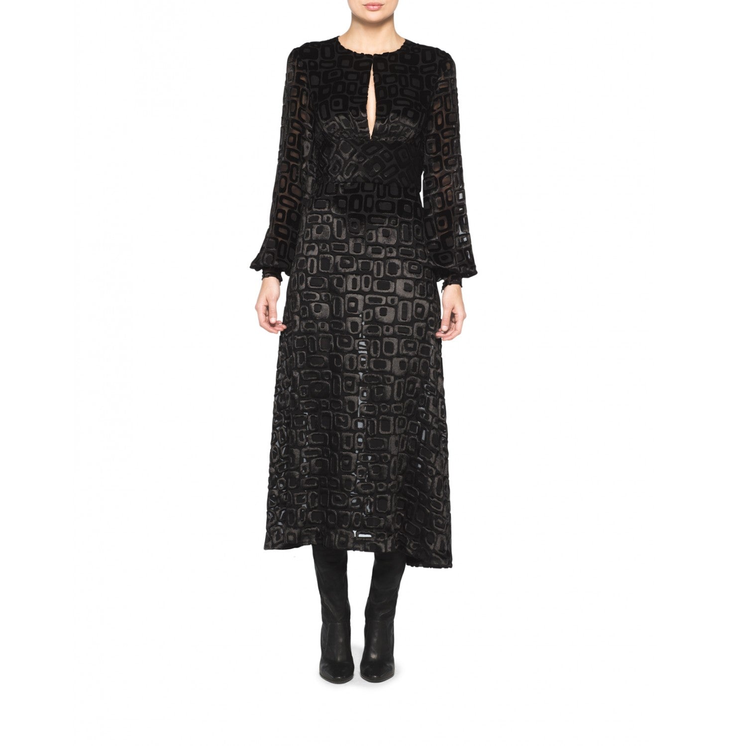 Tamara Mellon Black Geometric Devore Velvet Dress $995 NEW