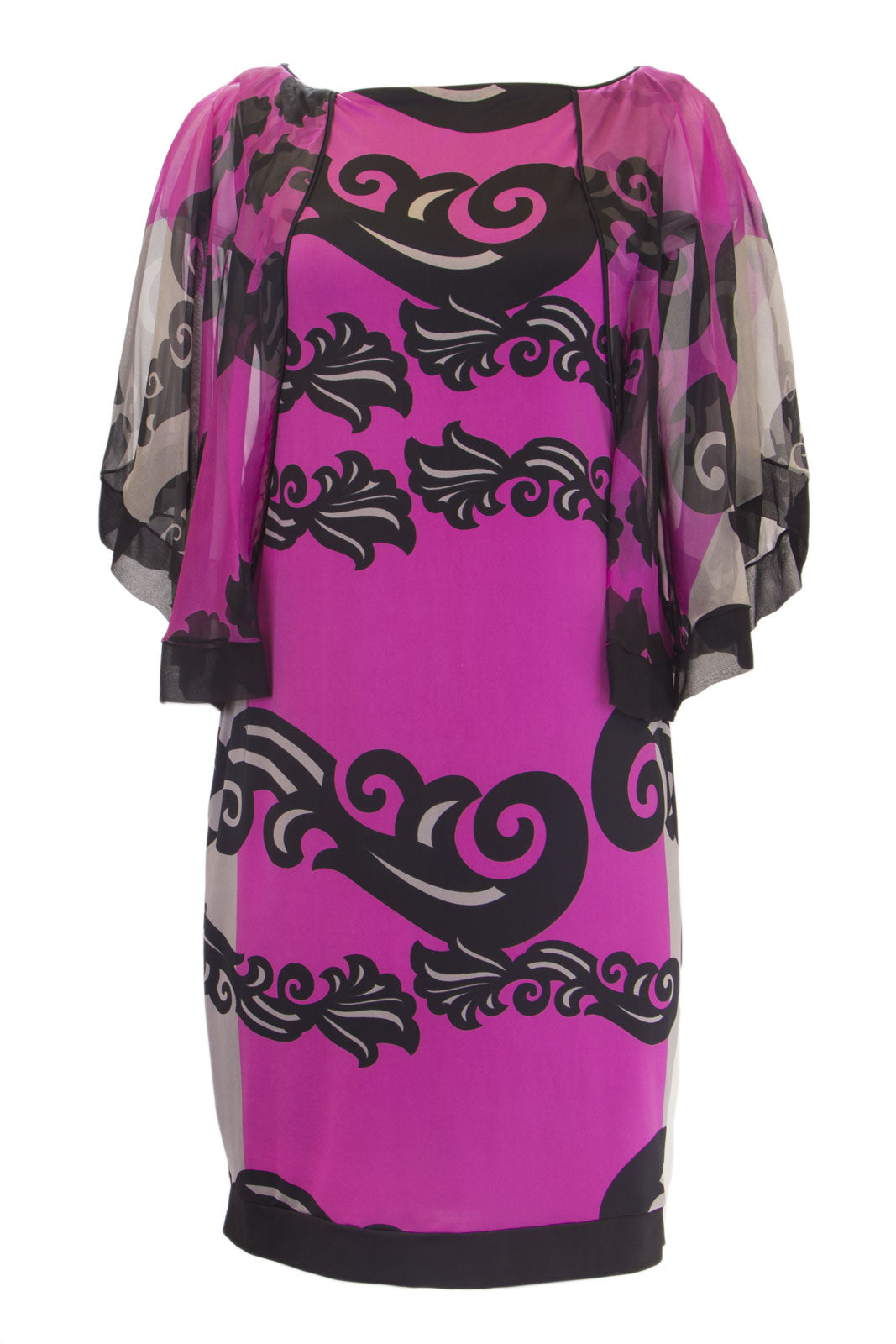 ANALILI Women's Floral Print Silk Batwing Dress A1306AE04 Sz Medium Magenta