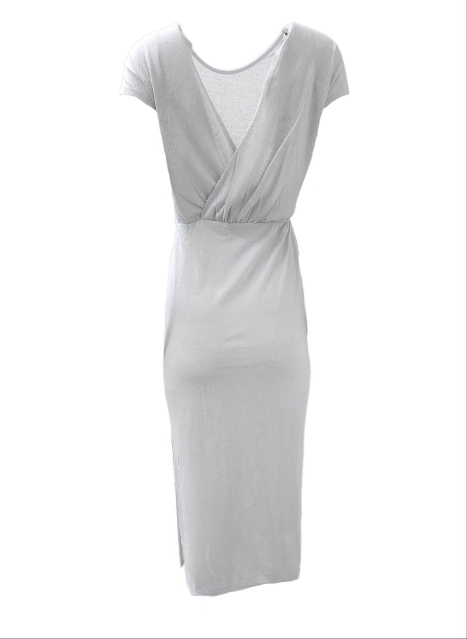 HoodLamb Women's Soft Grey Knit V-Back Maxi Hemp Dress 420 NWT