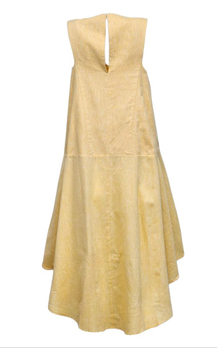 HoodLamb Women's Yellow Pocket A-Line Hemp Dress 420 NWT
