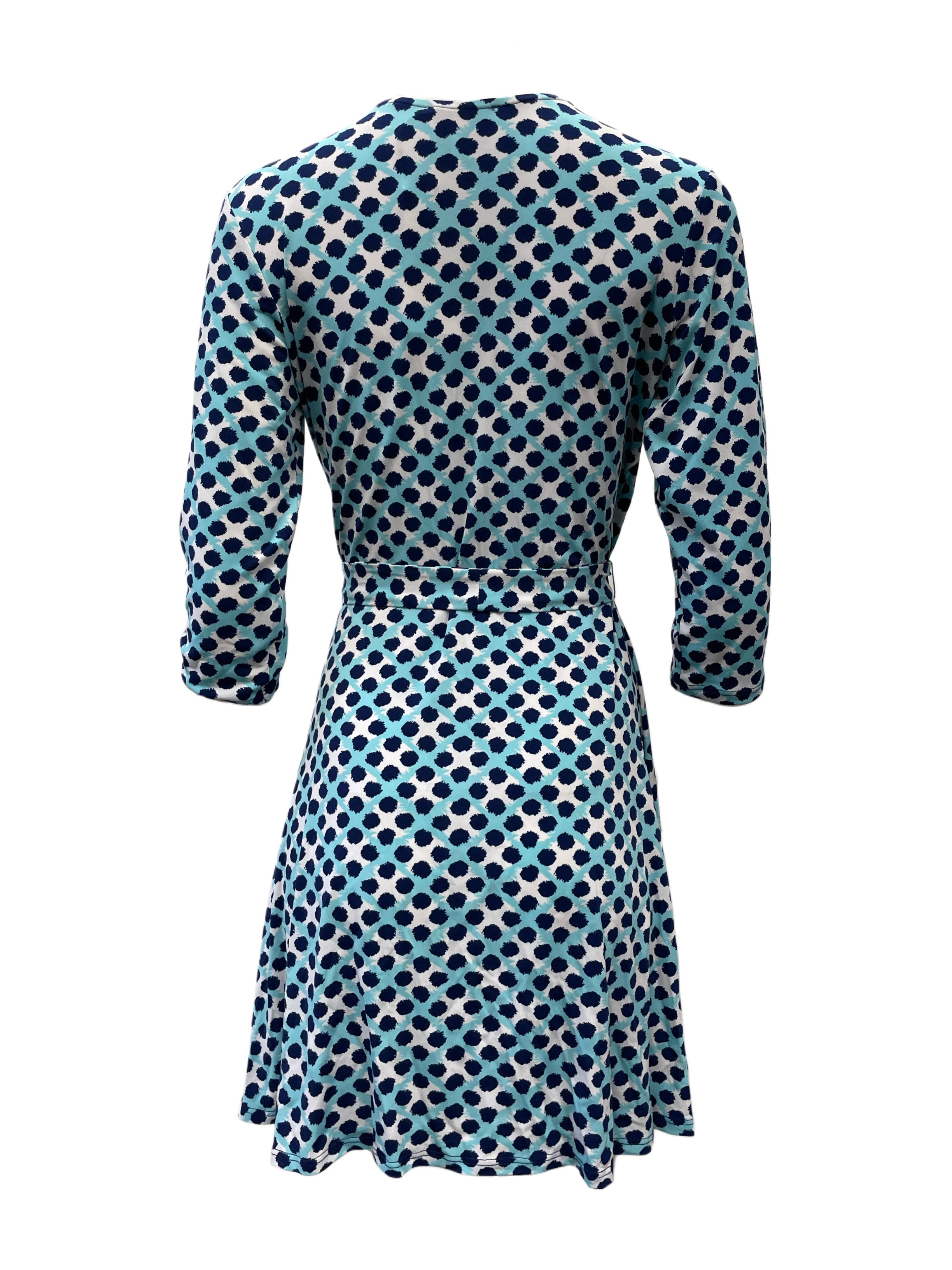 Leota Women's Blue Trellis Dot A-Line Stretchy Mini Dress #2003 NWT