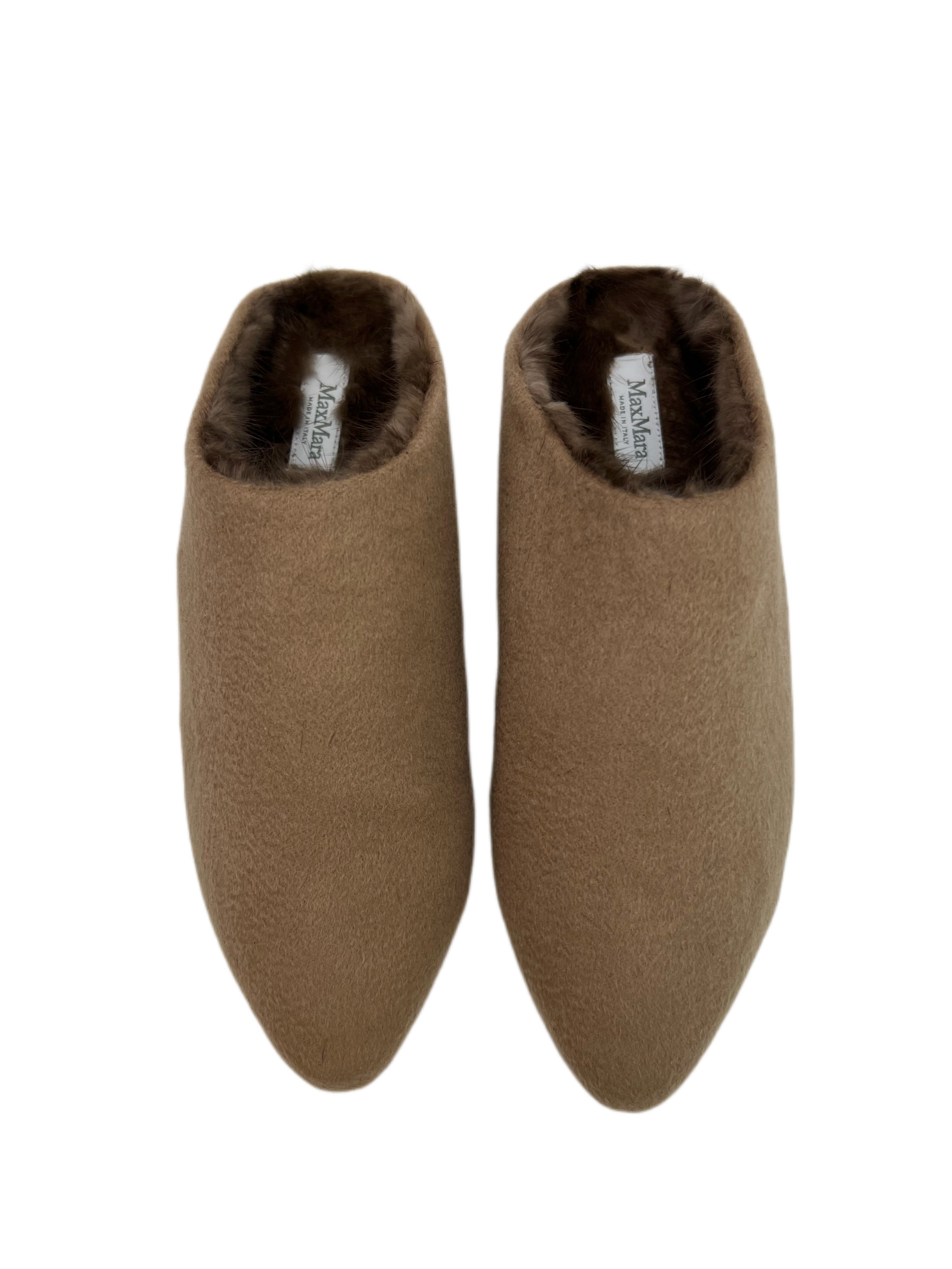 Max Mara Women's Cammello Pensile Mink Fur Pointed Toe Slippers Size 5 NWB