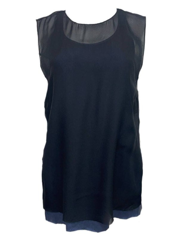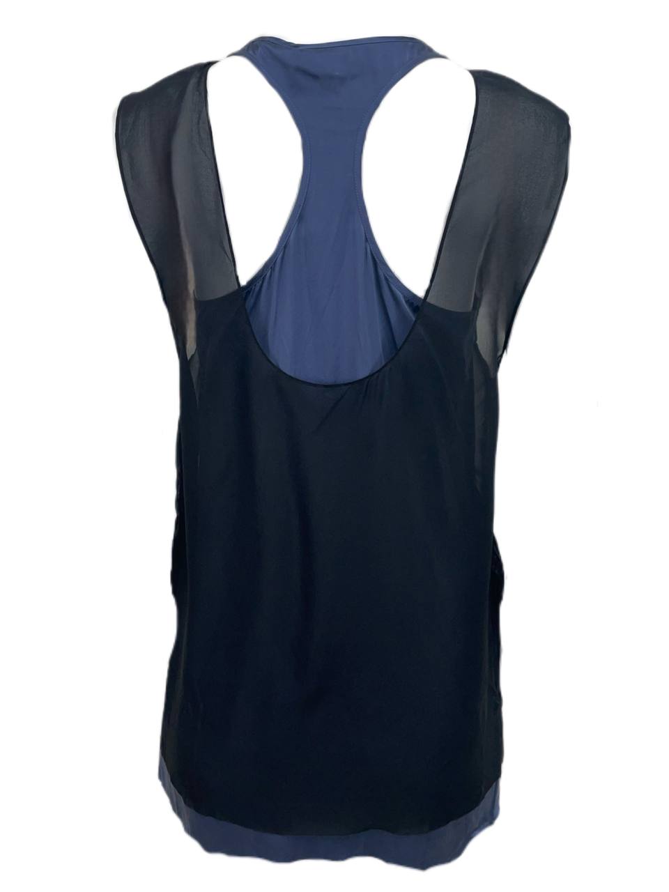 BLK DNM Women's Navy Blue Black Silk Layered Shirt 66 Size S NWT