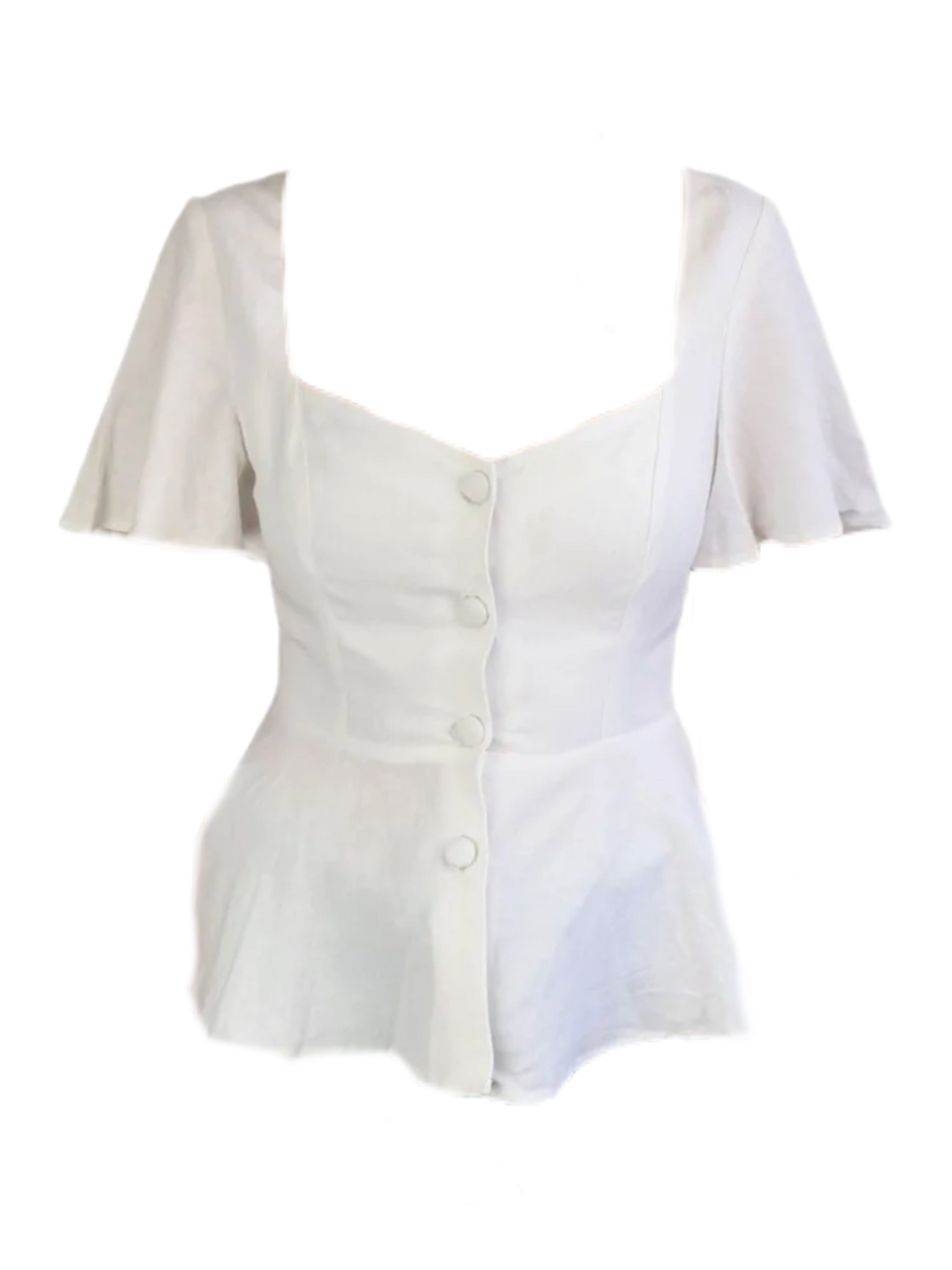 MADISON THE LABEL Women's White Peplum Short Sleeve Cotton Top #0103 X-Small NWT