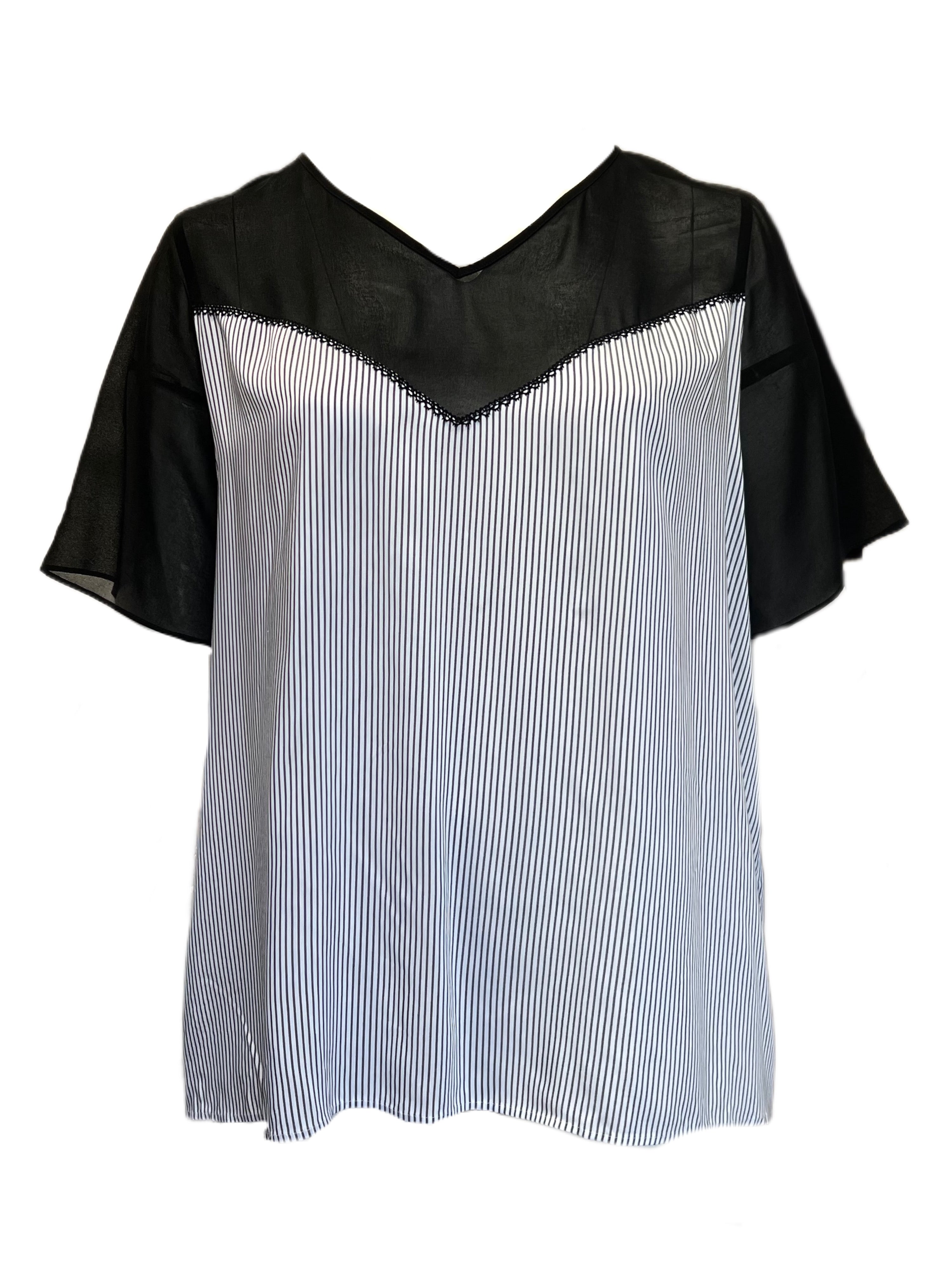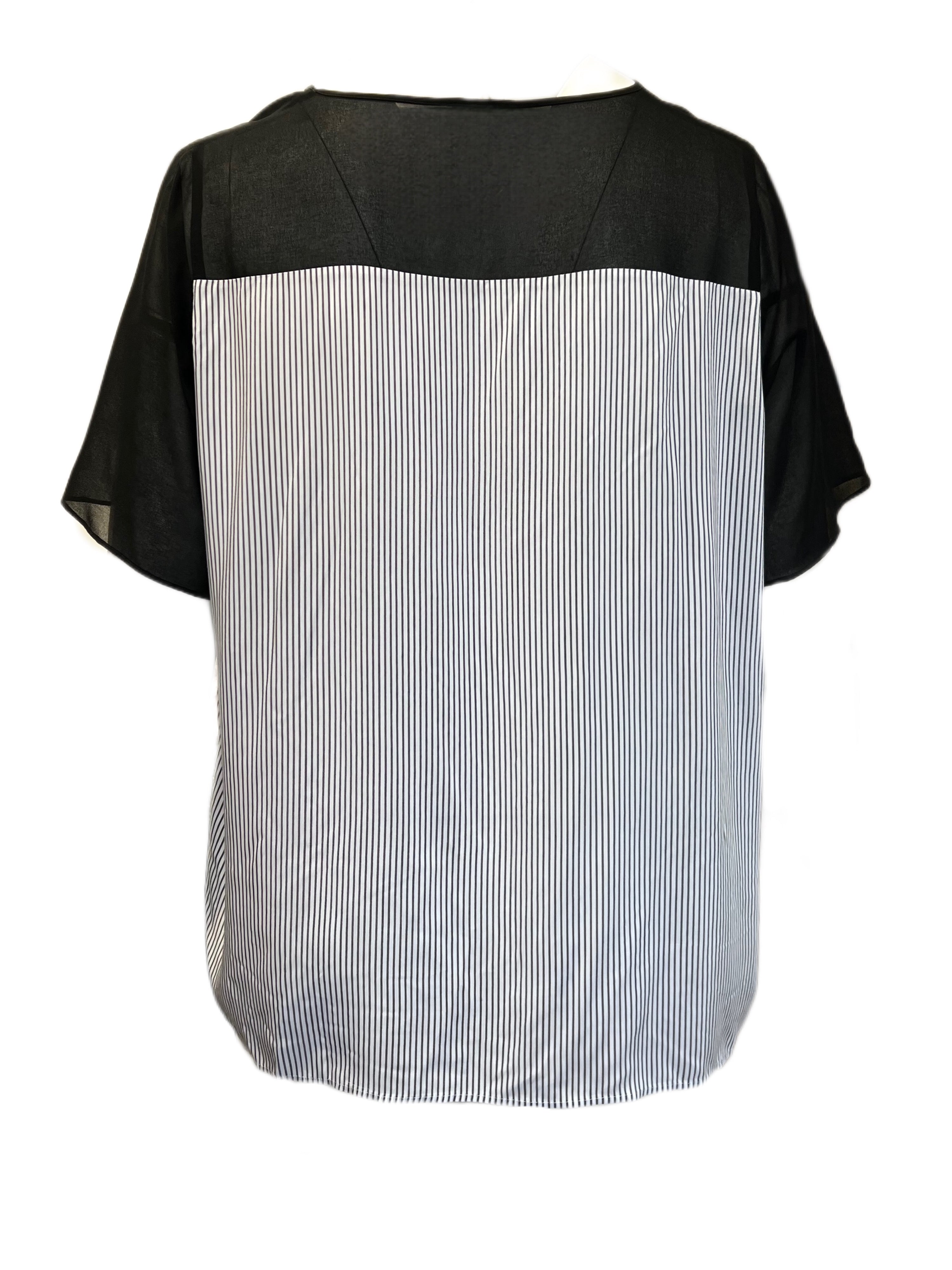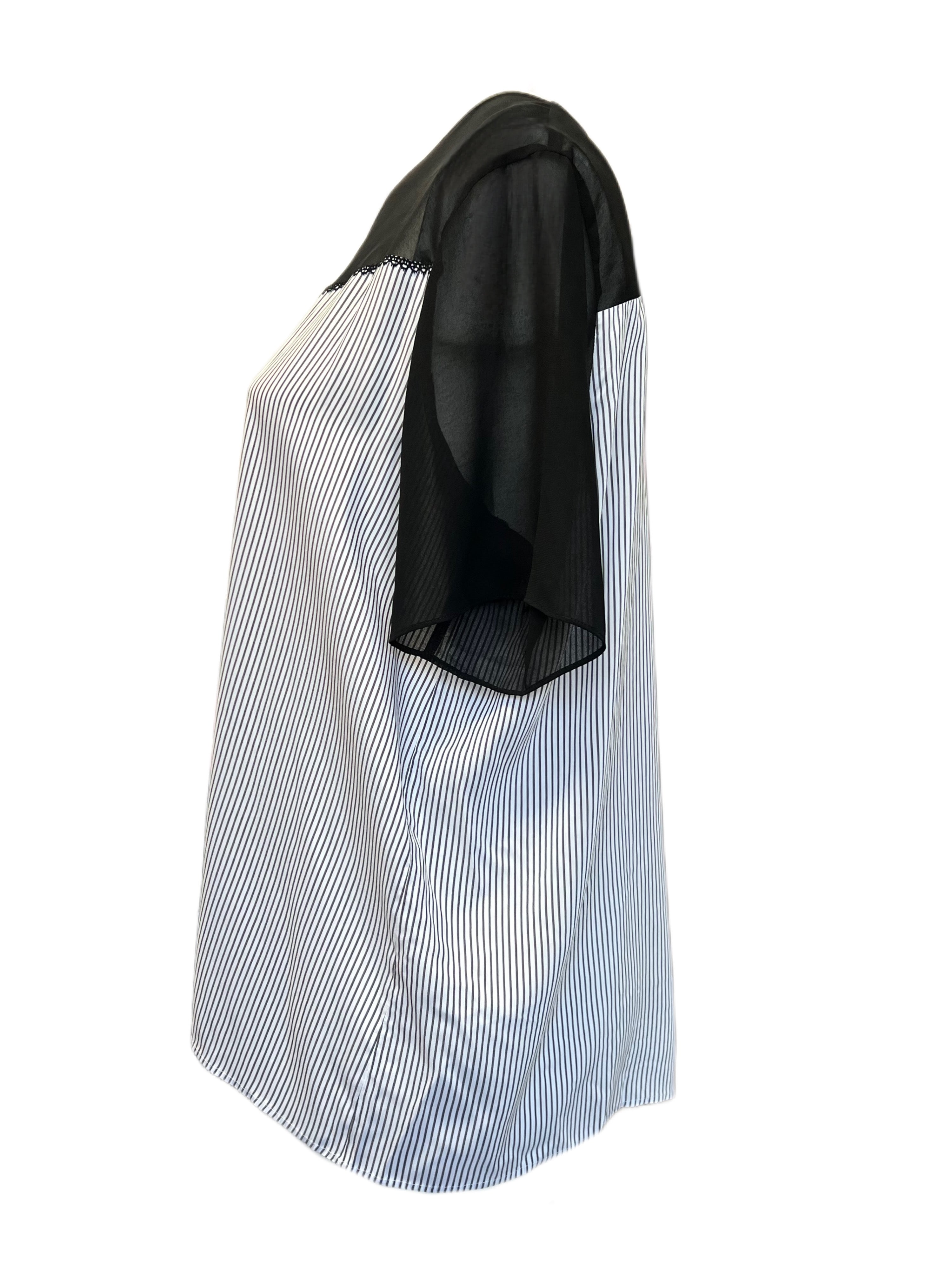 Marina Rinaldi Women's Blue Valletto Striped Jersey T Shirt NWT
