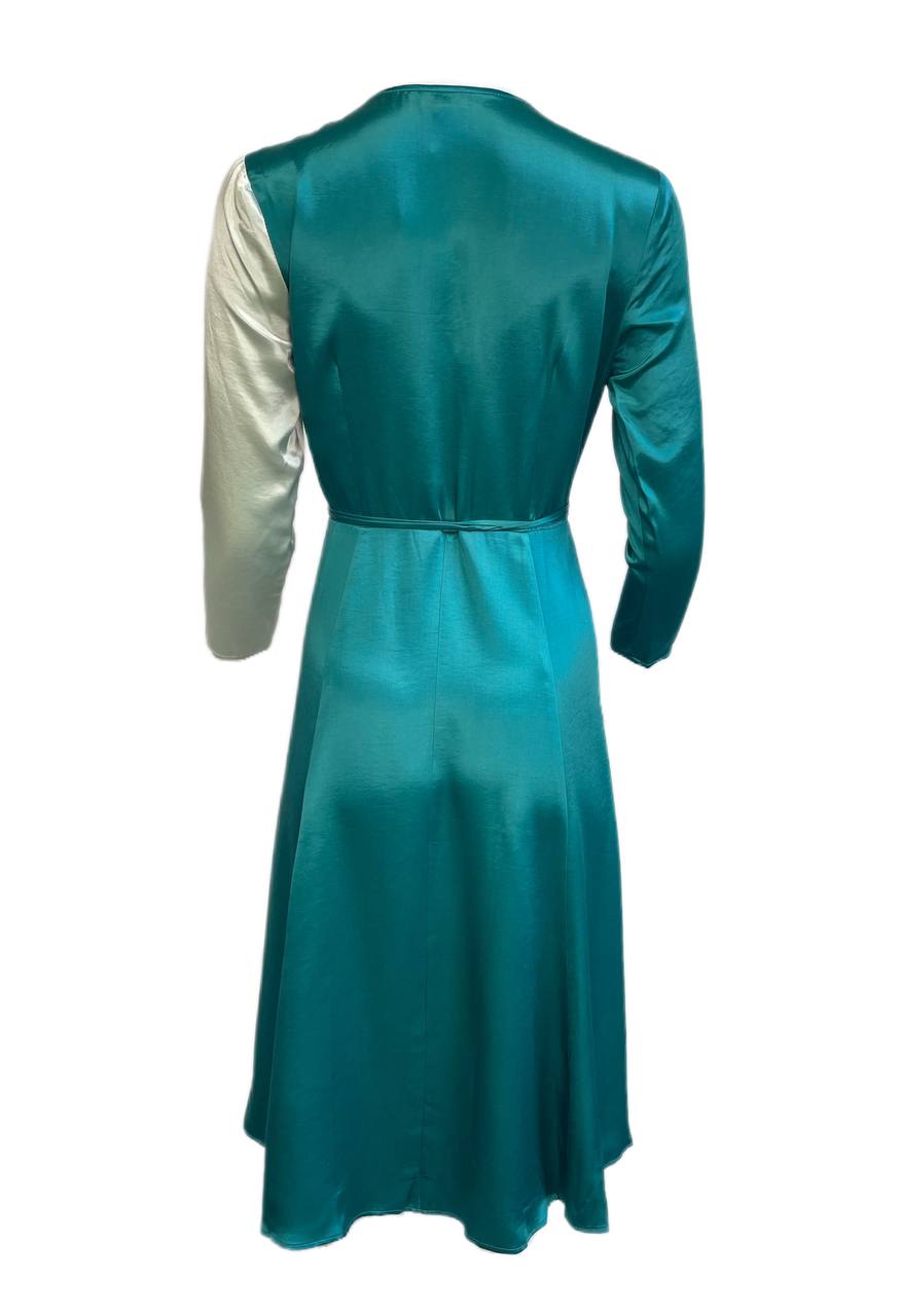 CALLIPYGIAN Women's Teal Seafoam Colorblock Wrap Dress Size 6 NWT